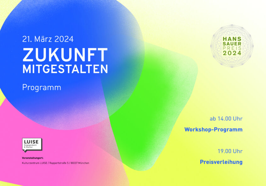 HANS SAUER PREIS 2024: Zukunft mitgestalten // Workshop-Programm und Preisverleihung am 21. März
