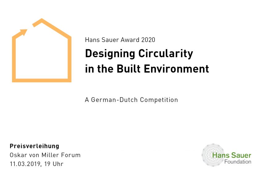 Die diesjährige Vergabe des Hans Sauer Awards findet am 11. März 2020 im Oskar von Miller Forum statt. Der Preis kürt innovative Ideen, die Zirkularität in der Baubranche stärken.