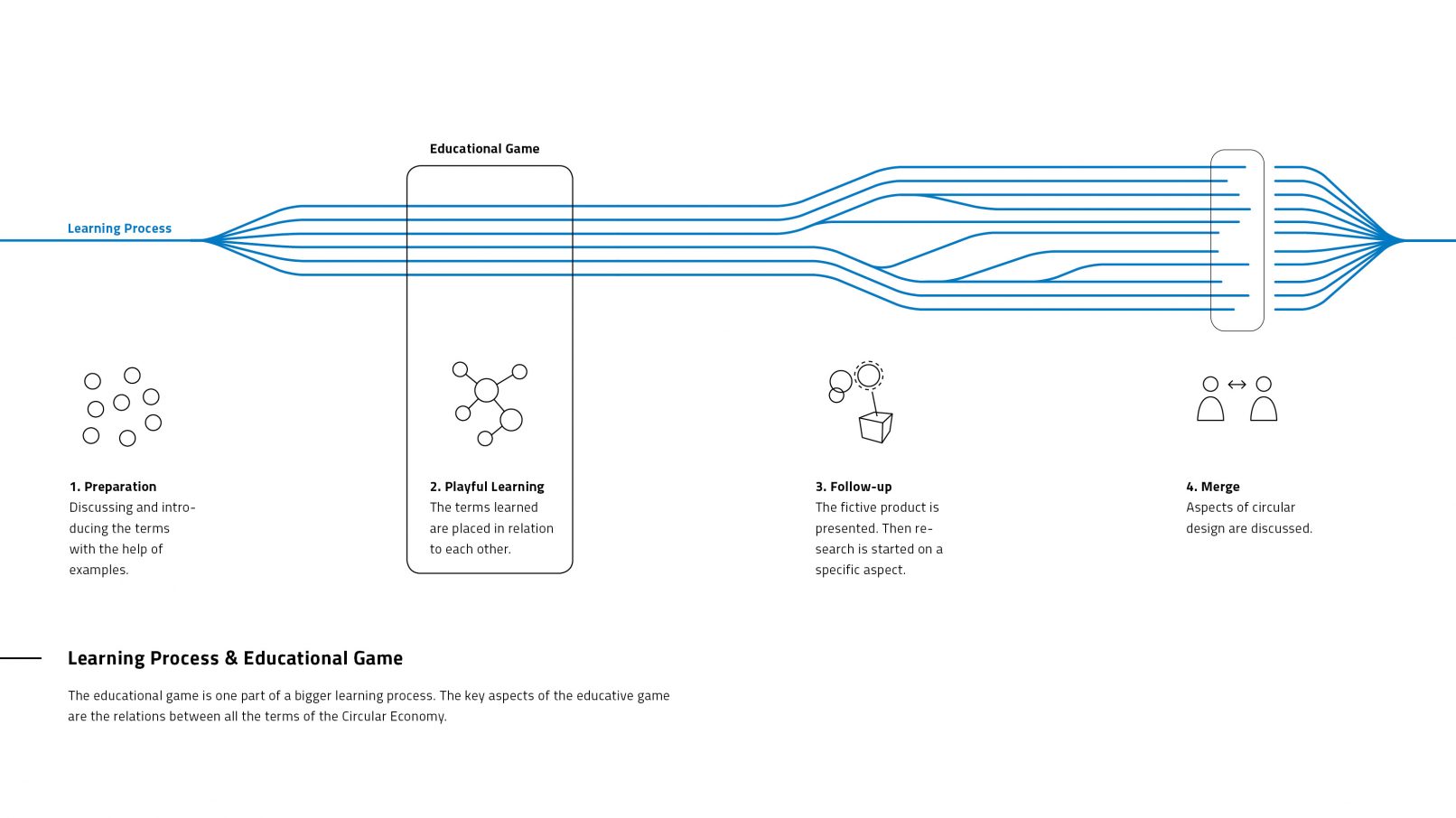 Im Rahmen dieser Masterarbeit im Bereich Design wird im schulischen Kontext angesetzt, um das oben genannte Umdenken anstoßen zu können. Die Arbeit folgt einem klassischen und ganzheitlichen Designprozess und setzt sich zunächst intensiv mit theoretischen Bausteinen des Lernens und der Zirkularität auseinander. Zusätzlich wird diese Recherchephase direkt im schulischen Kontext von qualitativer Design Recherche begleitet und mündet in einer Synthese der gewonnenen Erkenntnisse. Daraus leiten sich verschiedene Gestaltungsfelder ab. Im Rahmen dieser Thesis wird der vielversprechendste Bereich, das spielerische Lernen, adressiert. In der Folge entstehen mehrere Prototypen für einen spielerischen Lernbaustein. Hauptergebnis der Arbeit ist der Prototyp eines analogen Spiels und das Feedback, das durch gemeinsames Testen mit Schülerinnen, Schülern und Lehrpersonen erarbeitet wurde. Die Arbeit zeigt auf, wie ein mögliches Tool im Bereich Circular Society für den Regelunterricht aussehen kann und ist die Vorbereitung einer weiteren Ausarbeitung.