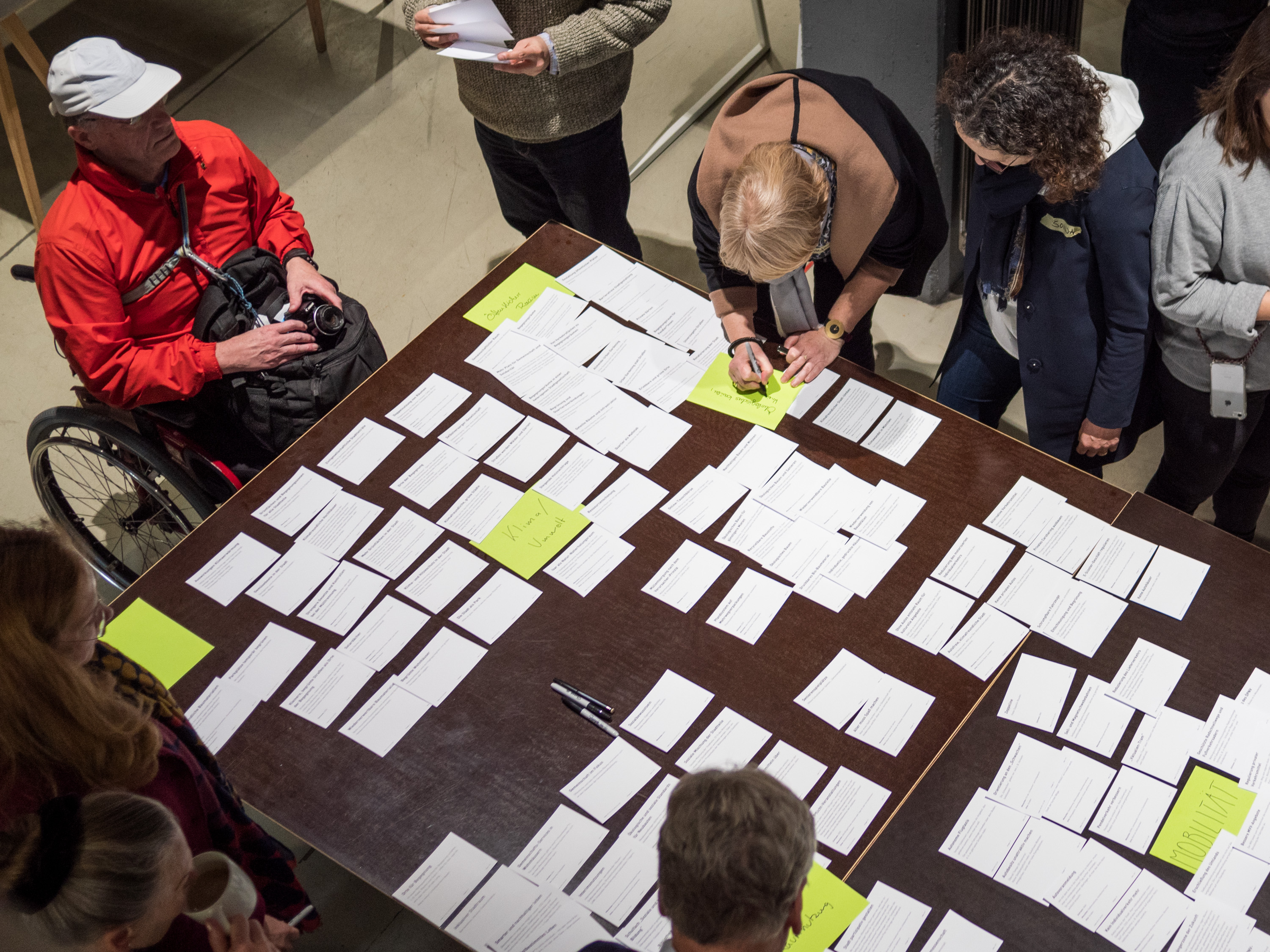 Beim letzten Zusammentreffen des Social Labs entwarfen die Teilnehmer*innen viele visionäre Ideen für ein zukünftiges, lebenswertes München. Diese Zukunftsideen wurden – in dem diesmal sechsstündigen Workshop-Format – zunächst gemeinschaftlich geclustert und dienten als Grundlagenmaterial für die anschließenden Dialog- und Arbeitsphasen.